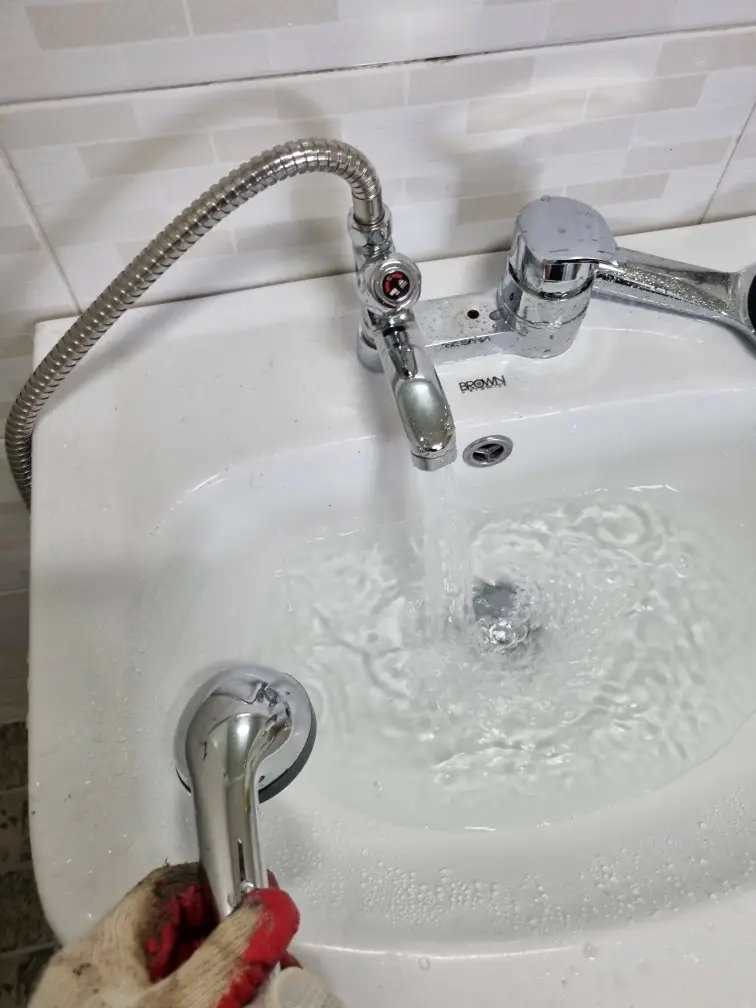 세면대 샤워겸용 수전은 물이 나오는 본체와 샤워 호스를 연결해 사용하는 형태입니다. 손잡이를 돌리거나 손잡이를 당겨 위로 올리면 샤워 모드로 전환되고, 다시 내리면 세면 모드로 돌아옵니다. 여러 부품이 맞물려 동작하다 보니 장기 사용 시 밸브 내부 마모, 호스 연결부 누수, 손잡이 느슨해짐 등이 생기기 쉽습니다.
